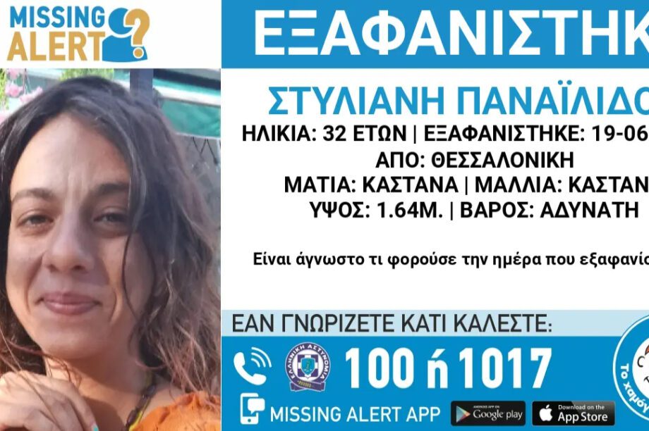 Το μεσημέρι της Τετάρτης (19/6/24) έγινε η εξαφάνιση από την περιοχή της Θεσσαλονίκης, της Παναϊλίδου Στυλιανής 32 ετών