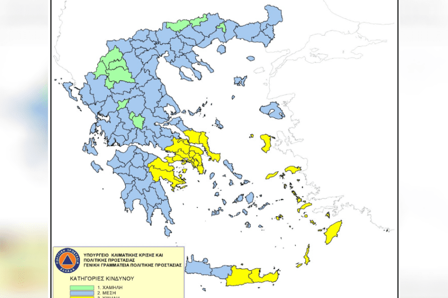 Σε “κίτρινο” συναγερμό κατηγορίας 3 λόγω του αυξημένου κινδύνου εκδήλωσης πυρκαγιάς, βρίσκεται σήμερα Κυριακή 16/6 η ανατολική Κρήτη