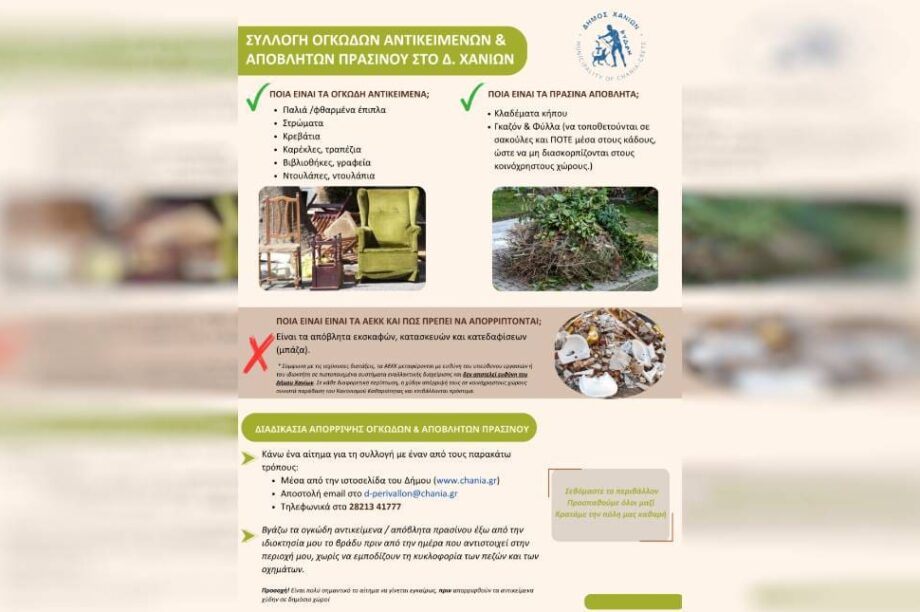 Μιχάλης Τσουπάκης: «Τα ογκώδη αντικείμενα αλλά και τα απόβλητα κήπου απαιτούν ειδική διαχείριση στην απόρριψη τους»