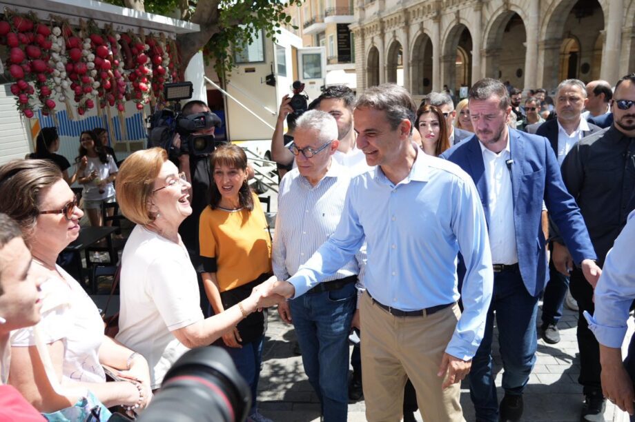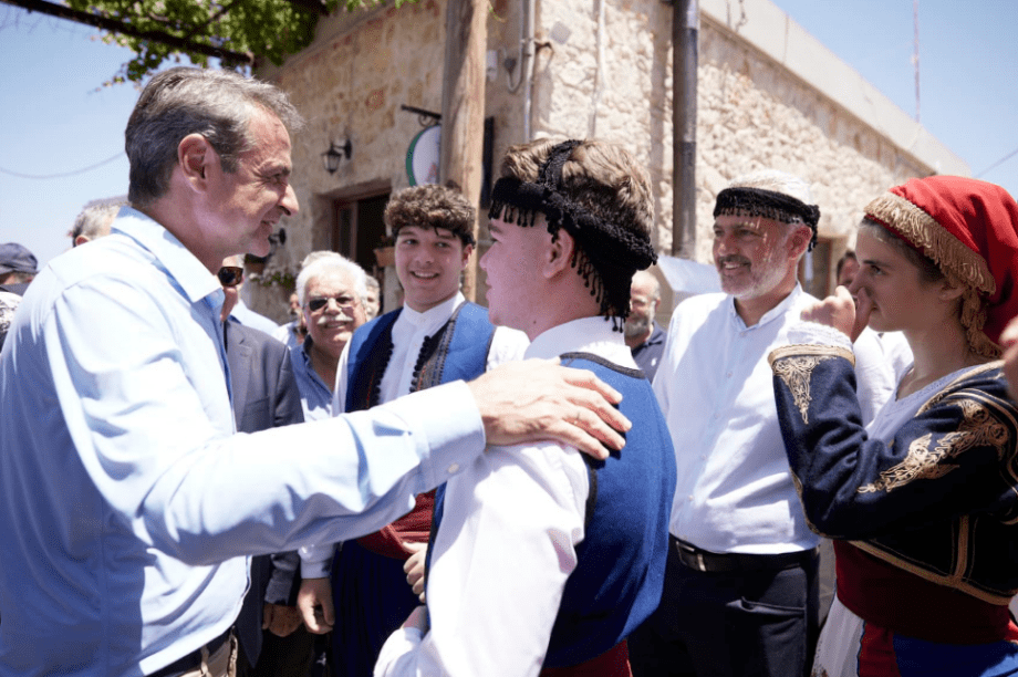 Δεν έλειψαν οι Κρητικές μαντινάδες στην σύντομη ομιλία του Κυριάκου Μητσοτάκη στο Ηράκλειο