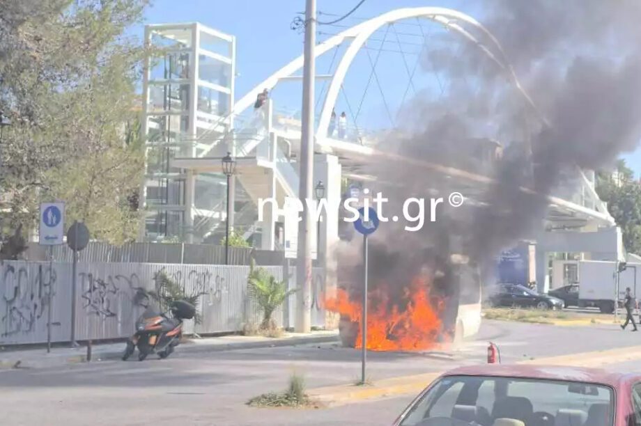 Η φωτιά φαίνεται να ξεκίνησε από τη μηχανή του λεωφορείου