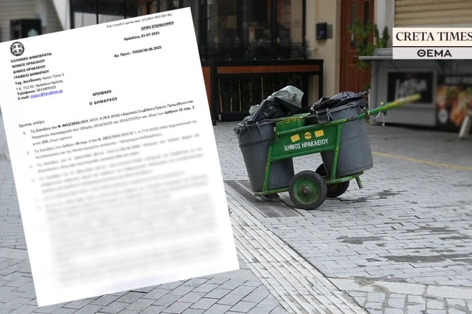 Νέα απευθείας ανάθεση ύψους περίπου 100.000 ευρώ για την απομάκρυνση και την αποκομιδή των απορριμμάτων, υπέγραψε ο Δήμαρχος Ηρακλείου