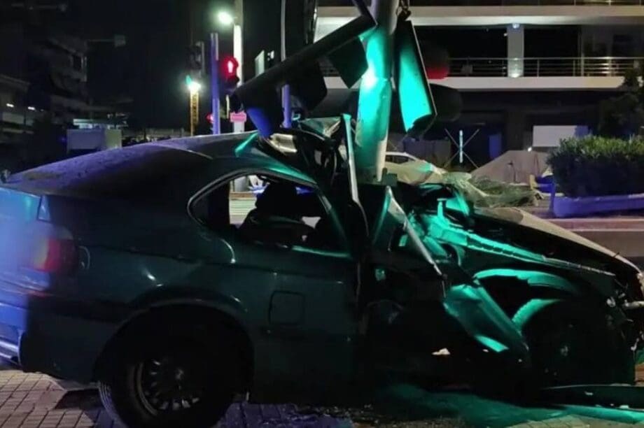 Το όχημα έπεσε με μεγάλη ταχύτητα σε φανάρι και χτύπησε πλαγιομετωπικά