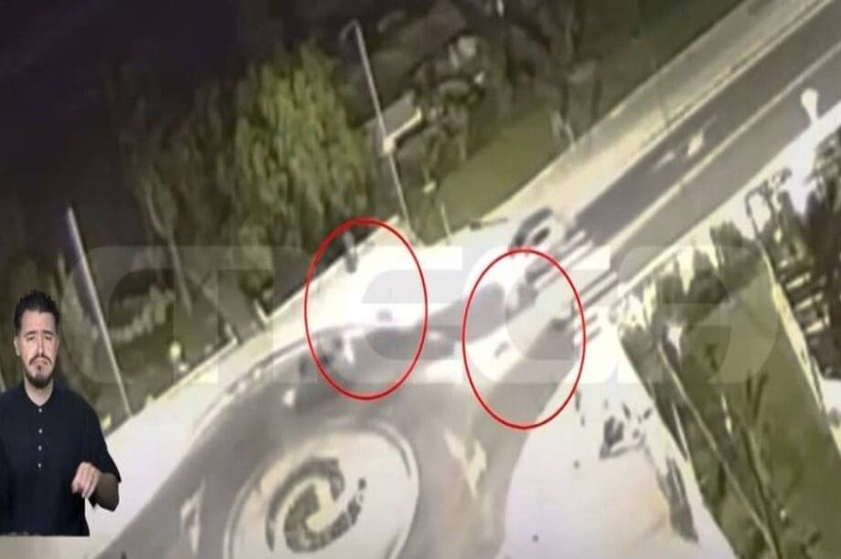 Στα πλάνα φαίνεται η μηχανή μεγάλου κυβισμού με υψηλή ταχύτητα να περνάει πάνω από τον κυκλικό κόμβο