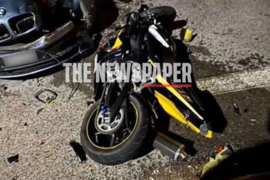 Η σφοδρότητα της σύγκρουσης ήταν τέτοια που οι δύο αναβάτες της μηχανής εκσφενδονίστηκαν στον αέρα