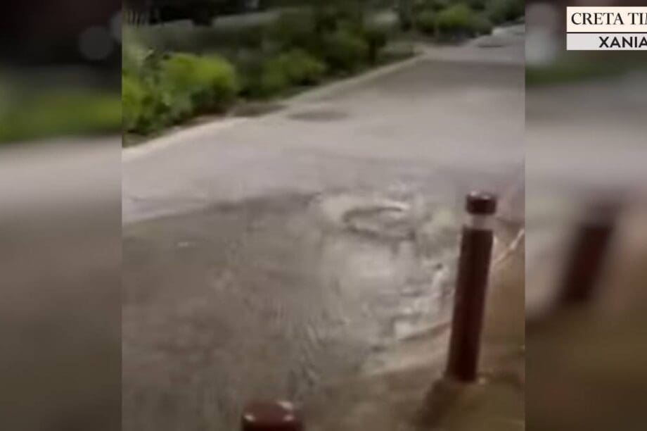 Από υπόνομο άρχισαν να “ξεπηδούν” πίδακες” νερού και μάλιστα, βρόμικου νερού και να απλώνεται κατά μήκος του δρόμου