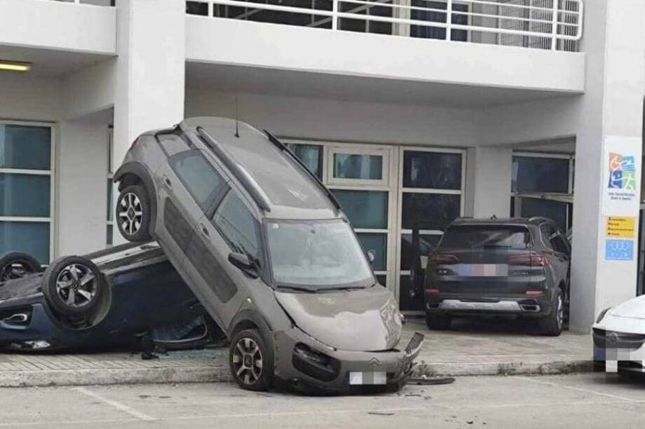 Ο ηλικιωμένος οδηγός ΙΧΕ έχασε τον έλεγχο του αυτοκινήτου του και προσέκρουσε με σφοδρότητα στην κολόνα από κατάστημα δίπλα στον σταθμό πάρκινγκ