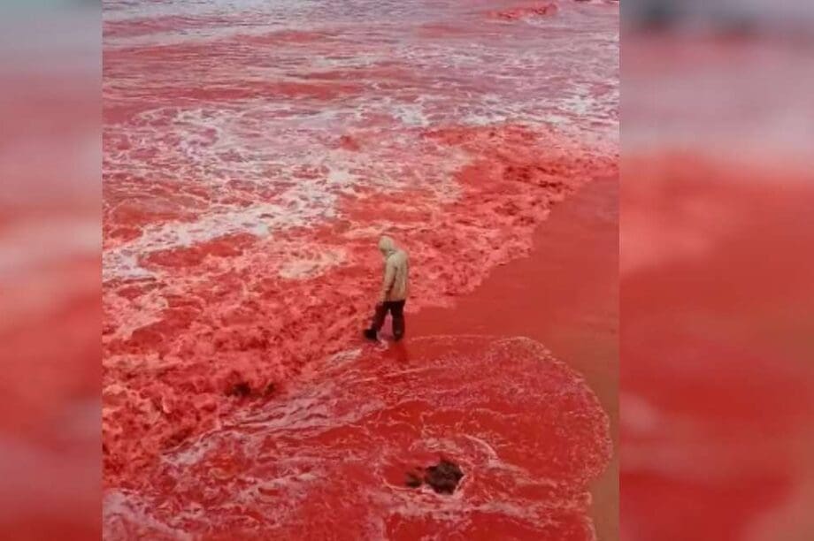 Παραλία έγινε κόκκινη μετά από βροχή στο Ιράν (φωτογραφία)