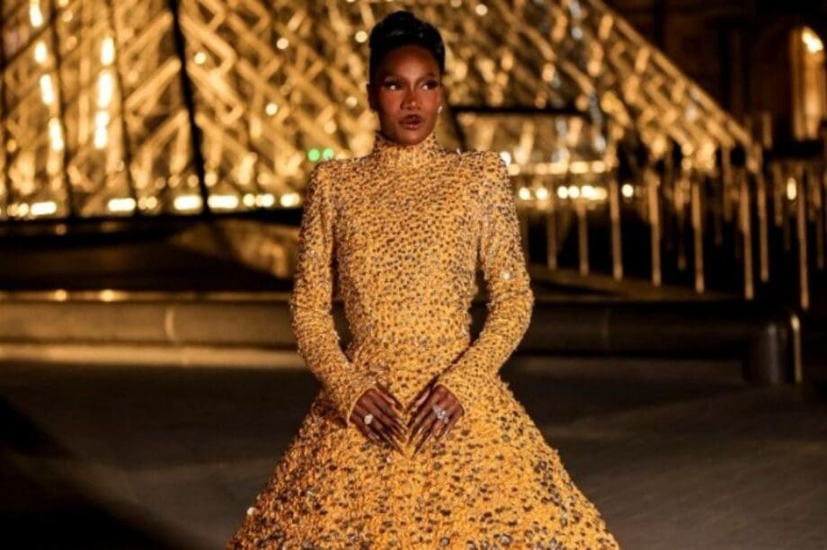 Έφτασε στο κόκκινο χαλί του γκαλά με μια απαστράπτουσα ολοκέντητη χρυσή δημιουργία
