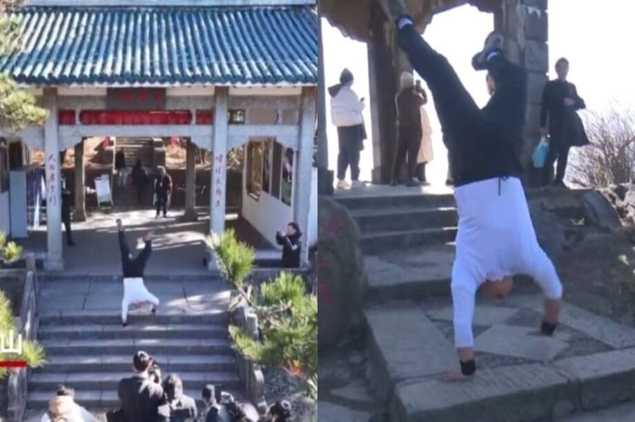 Κινέζος έχει γίνει διάσημος για την αναρρίχηση στα πιο δημοφιλή βουνά της χώρας του με τα χέρια του
