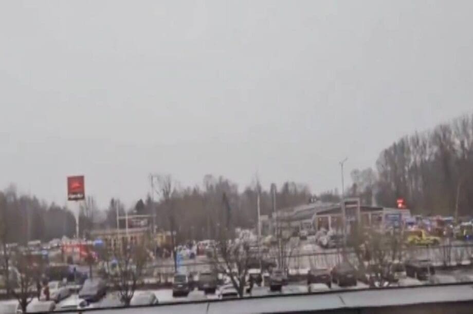 Στο σύντομο βίντεο ακούγονται πυροβολισμοί και φαίνονται άνθρωποι να τρέχουν μέσα στη χιονισμένη αυλή για να διαφύγουν