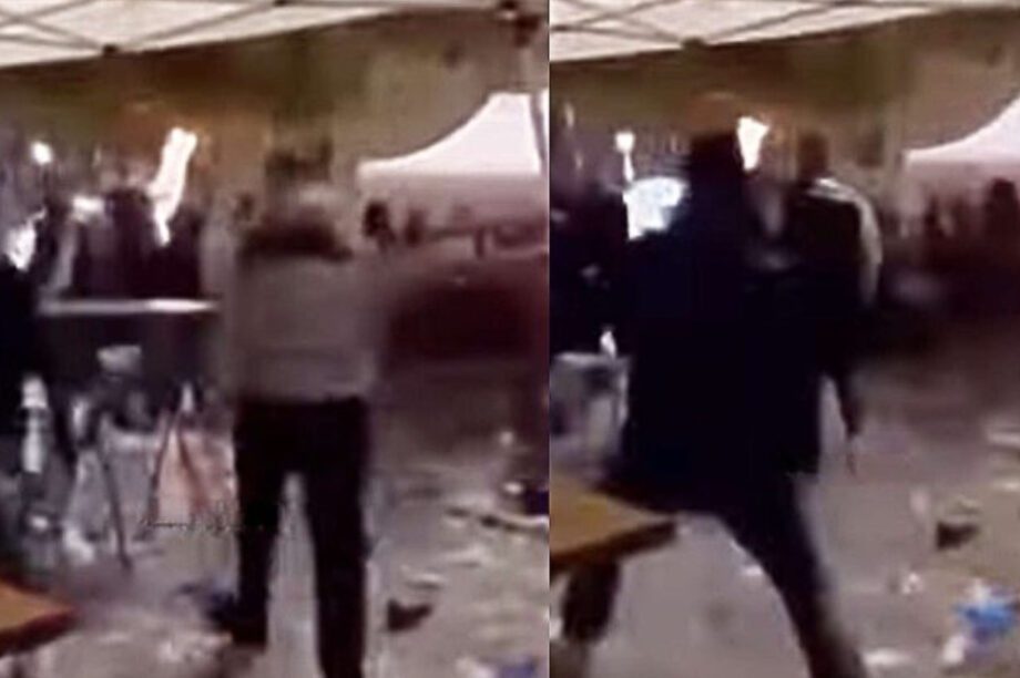 Φωνές, τραπέζια πεσμένα στο έδαφος και άτομα πιασμένα στα χέρια