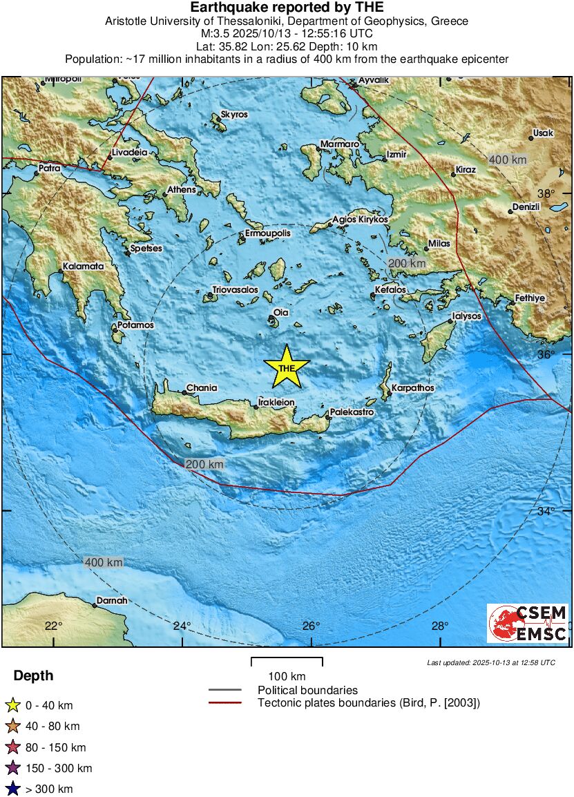 Σεισμική δόνηση 3,5 Ρίχτερ καταγράφηκε το μεσημέρι της Δευτέρας κοντά στο Ηράκλειο.