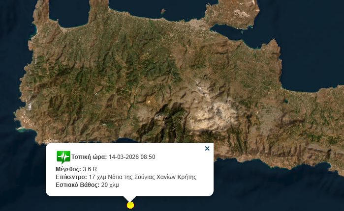 Σεισμική δόνηση σημειώθηκε το πρωί του Σαββάτου 14 Μαρτίου στα Χανιά