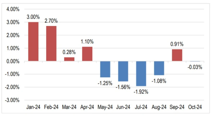 Οριακή μείωση 0,03% παρουσίασαν τον Οκτώβριο οι τιμές των προϊόντων στα σούπερ μάρκετ σε σχέση με τον Οκτώβριο 2023, σύμφωνα με έρευνα του Ινστιτούτου Έρευνας Λιανεμπορίου Καταναλωτικών Αγαθών (ΙΕΛΚΑ). Η ίδια έρευνα καταδεικνύει περαιτέρω σταθεροποίηση των τιμών στο δεκάμηνο 2024 κατά μέσο όρο +0,22%, σε σχέση με το δεκάμηνο του 2023