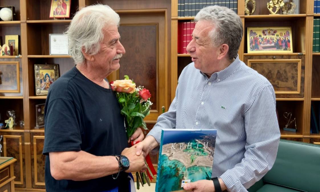 Τον αθλητή υπεραποστάσεων Θεοχάρη Αθητάκη υποδέχθηκε σήμερα στο κτίριο της Περιφέρειας ο Περιφερειάρχης Κρήτης Σταύρος Αρναουτάκης, με αφορμή την ολοκλήρωση της ιστορικής διαδρομής 153 χιλιομέτρων που πραγματοποίησε ο αθλητής από την Ανώπολη Σφακίων προς το Ηράκλειο.