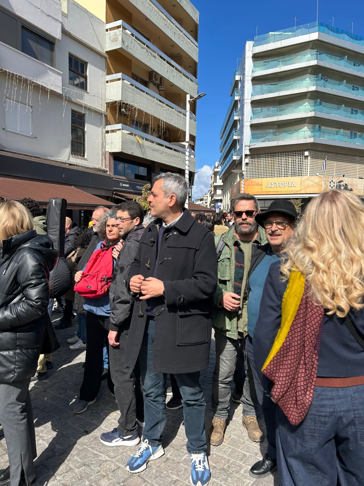 Ο Χάρης Μαμουλάκης συνομίλησε με κόσμο που είχε συγκεντρωθεί για να τιμήσει τη μνήμη των 57 θυμάτων των Τεμπών και σε δήλωσή του ανέφερε: