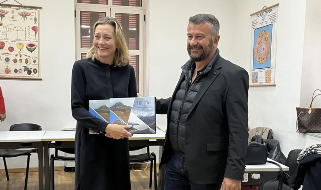 Την Πρέσβη υποδέχθηκαν, μεταξύ άλλων, η Διευθύντρια της ΣΑΕΚ Ηρακλείου – Γεωργικής Σχολής Μεσαράς και ο Δήμαρχος Γόρτυνας