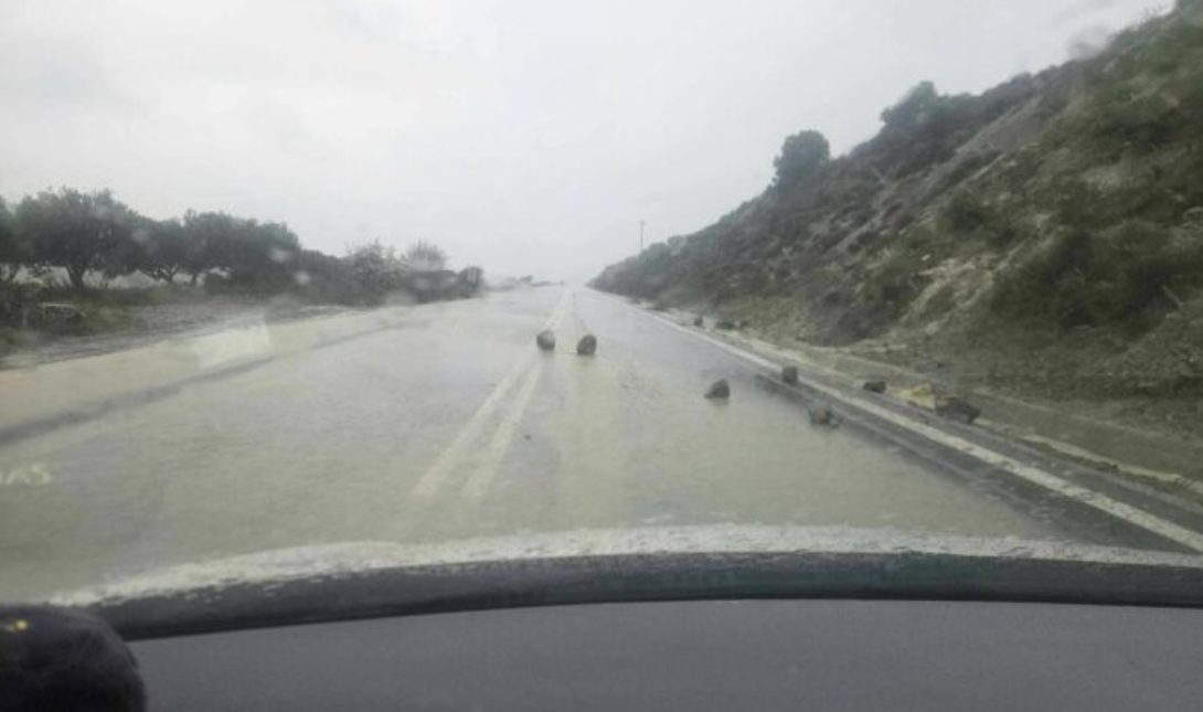 Στο «έλεος» της κακοκαιρίας η Κρήτη – Έπεσαν πέτρες σε δρόμους στη Βιάννο (φώτο)