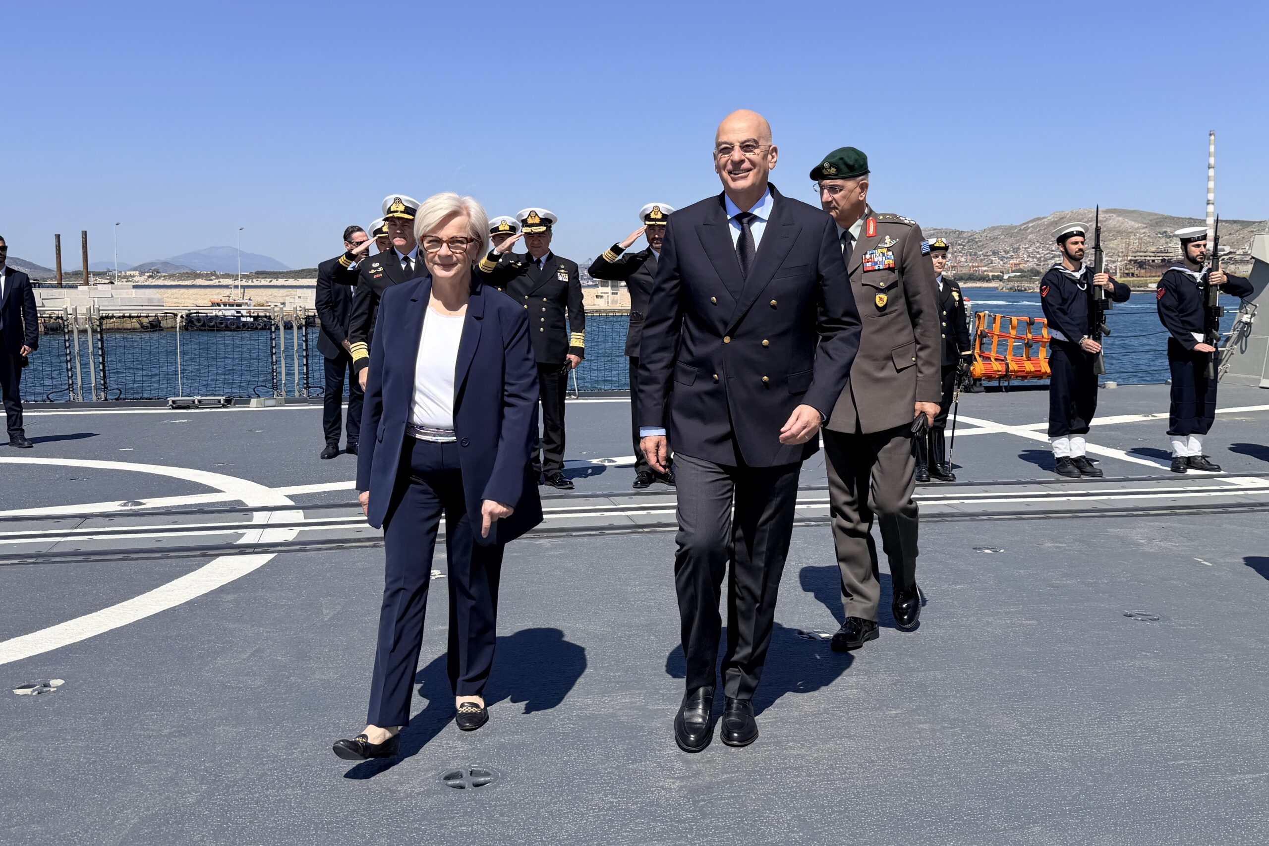 Νωρίτερα, ο κ. Δένδιας και η κ. Vautrin συνόδευσαν τον Πρωθυπουργό και τον Γάλλο Πρόεδρο κατά τη διάρκεια της επίσκεψής τους στη Φρεγάτα ΚΙΜΩΝ.