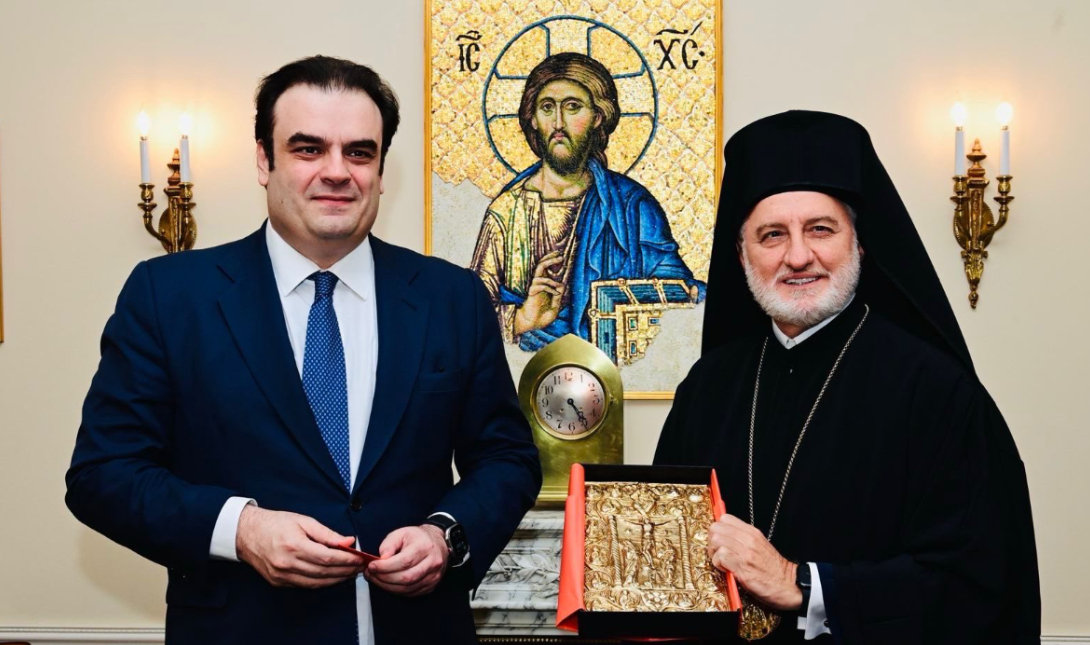 Συνάντηση με τον Αρχιεπίσκοπο Αμερικής Ελπιδοφόρο πραγματοποίησε ο υπουργός Εθνικής Οικονομίας και Οικονομικών Κυριάκος Πιερρακάκης στην έδρα της Ελληνορθόδοξης Αρχιεπισκοπής Αμερικής. Τον ΥΠΕΘΟ συνόδευε η Γενική Πρόξενος της Ελλάδας στη Νέα Υόρκη, Ιφιγένεια Καναρά.