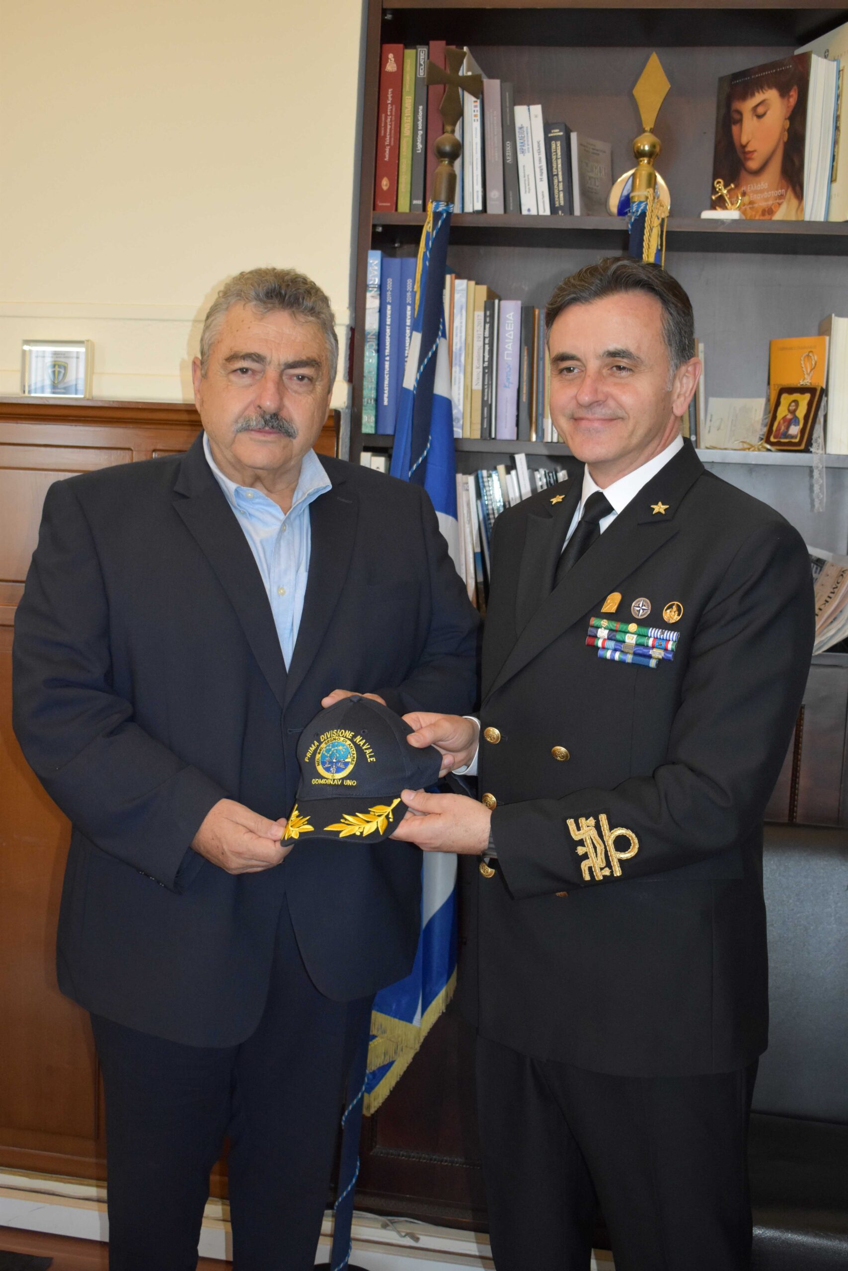 O Αντιπεριφερειάρχης Χανίων Νίκος Καλογερής υποδέχτηκε, το Μεγάλο Σάββατο 11 Απριλίου 2026 το πρωί, τον Τακτικό Διοικητή της Ναυτικής Επιχείρησης «Mediterraneo Sicuro» Υποναύαρχο Massimo Bonu, ο οποίος συνοδευόταν από τον Κυβερνήτη της ιταλικής φρεγάτας «Federico Martinengo» Πλοίαρχο Marco Cassetta, και τον Ανθυποπλοίαρχο Maurizio Dell’Aquila.