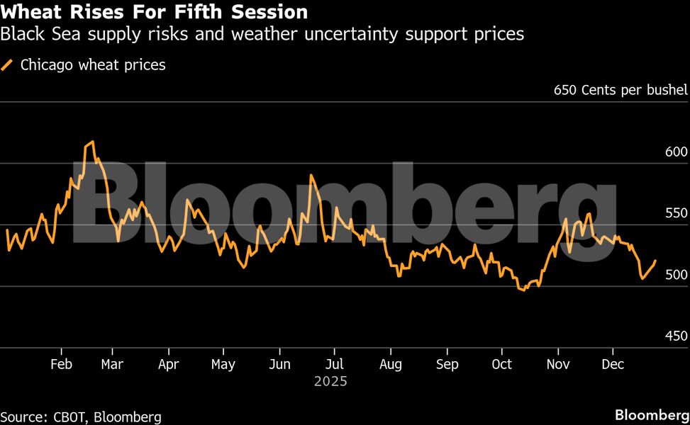 Τα συμβόλαια μελλοντικής εκπλήρωσης σιταριού στο Σικάγο ενισχύθηκαν για πέμπτη συνεχόμενη συνεδρίαση, κατευθυνόμενα προς το μεγαλύτερο ανοδικό σερί από τον Απρίλιο, καθώς οι κίνδυνοι από τη Μαύρη Θάλασσα για την προσφορά και η αστάθεια του καιρού στηρίζουν τις τιμές.