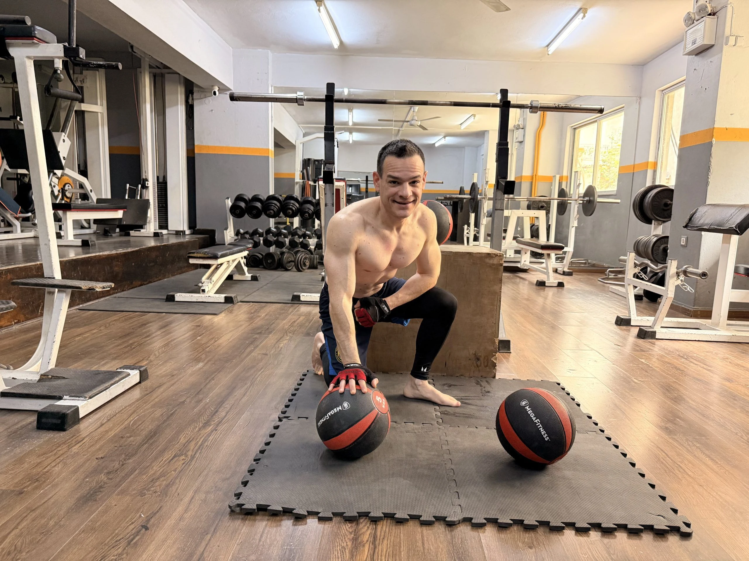Πραγματοποίησε 59 push-ups πτώσης σε ένα λεπτό, με το ένα πόδι σηκωμένο σε ασταθείς ιατρικές μπάλες