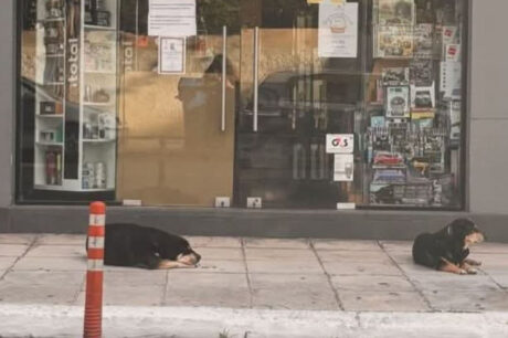 02.04.2026, 15:15 Χανιά: Δύο πιστοί σκύλοι περιμένουν έξω από το κλειστό μαγαζί της ιδιοκτήτριάς τους που πέθανε λίγες ημέρες πριν