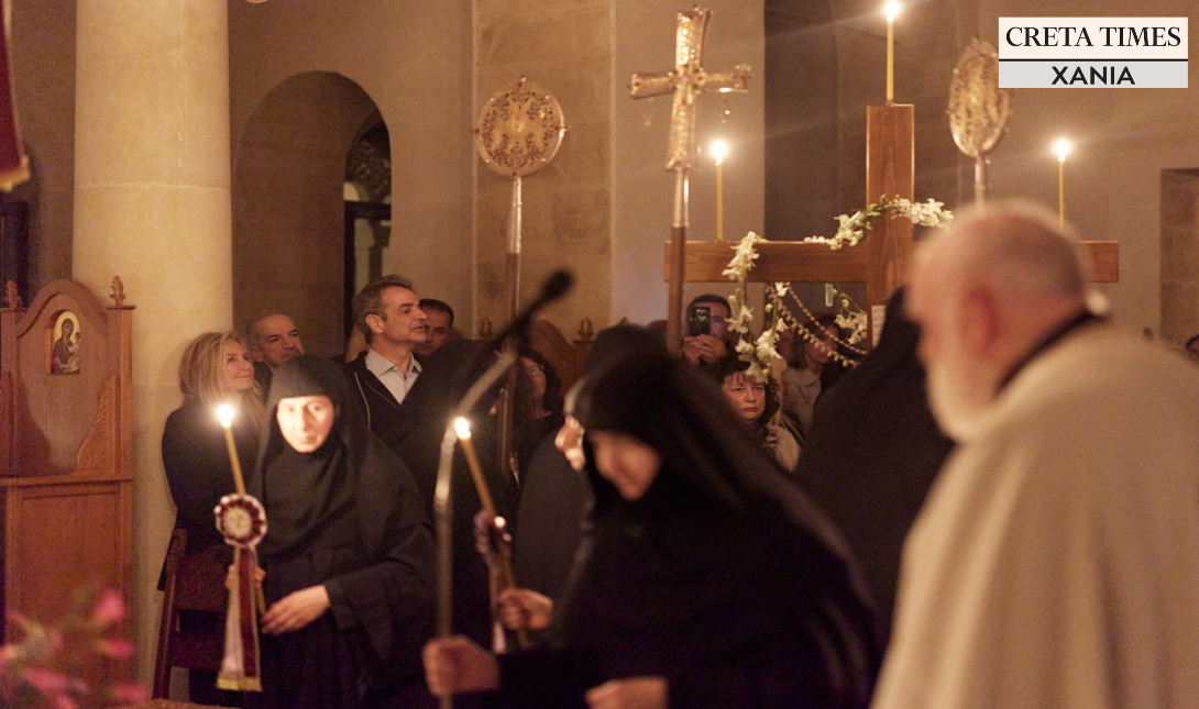 Ο Πρωθυπουργός με την σύζυγό του Μαρέβα Γκραμπόφσκι Μητσοτάκη, παρακολούθησε την Ακολουθία του Επιτάφιου θρήνου στον ναό της Μονής που είναι αφιερωμένος στη Μεταμόρφωση του Σωτήρος , αλλά εορτάζει και στην εορτή της Αγίας Κυριακής.